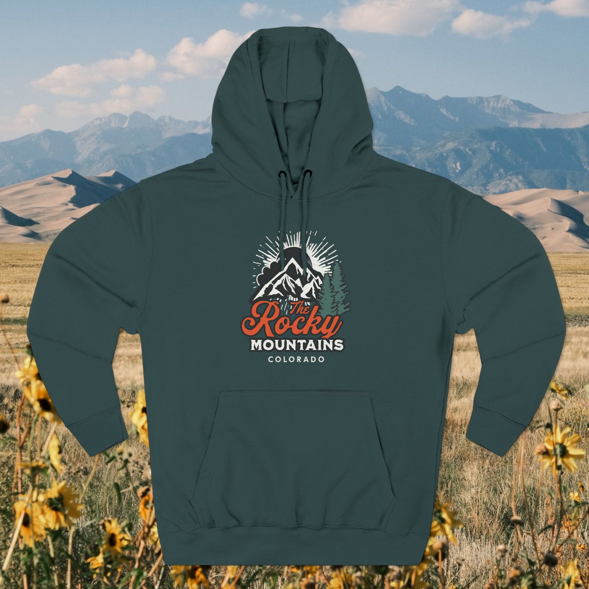 Whether you're hitting the trails or simply embracing the comfort of a hoodie, the "Rocky Mountains" Hoodie ensures you stay both stylish and snug on your adventures.